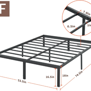 🛏️18 Inch Tall Heavy Duty Steel Slat Bed Frame/Anti-Slip Support/Easy Assembly Mattress Foundation/No Noise/No Box Spring Needed/Full/Black