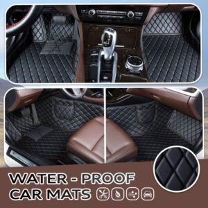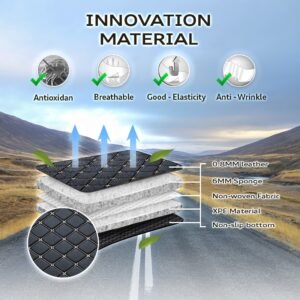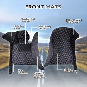Made out of ultra-durable vegan leather, soft memory foam, polypropylene resin with hard wear properties and honeycomb anti-Skid Base, our car mats keep water and moisture away from your vehicle floor. Provide anti-skid protection when driving.