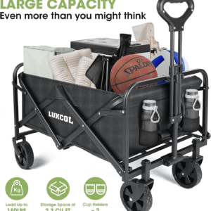 Collapsible Folding Outdoor Utility Wagon,Beach Wagon Cart with All Terrain Wheels & Drink Holders,Portable Sports Wagon for Camping, Shopping, Garden and Beach